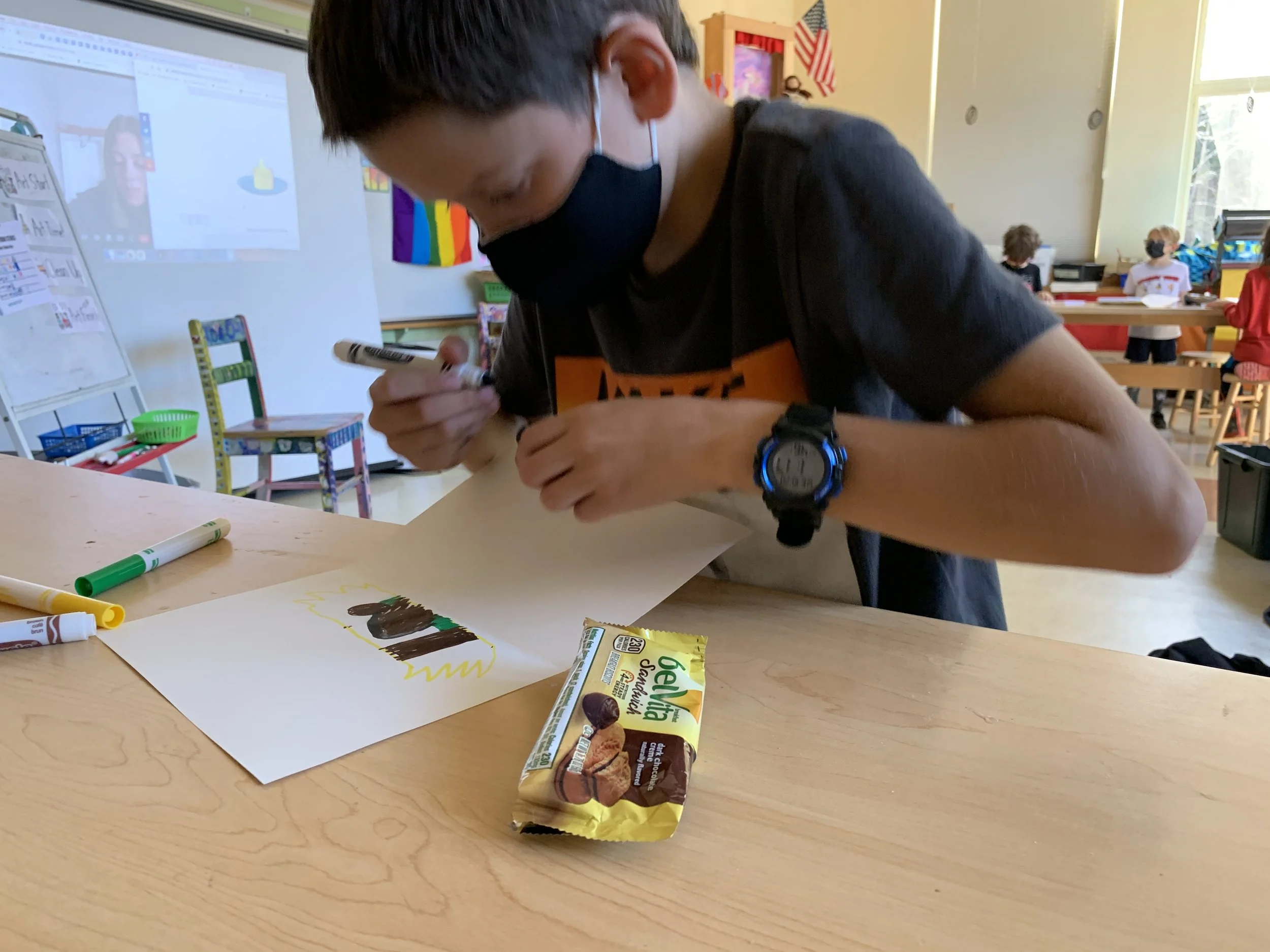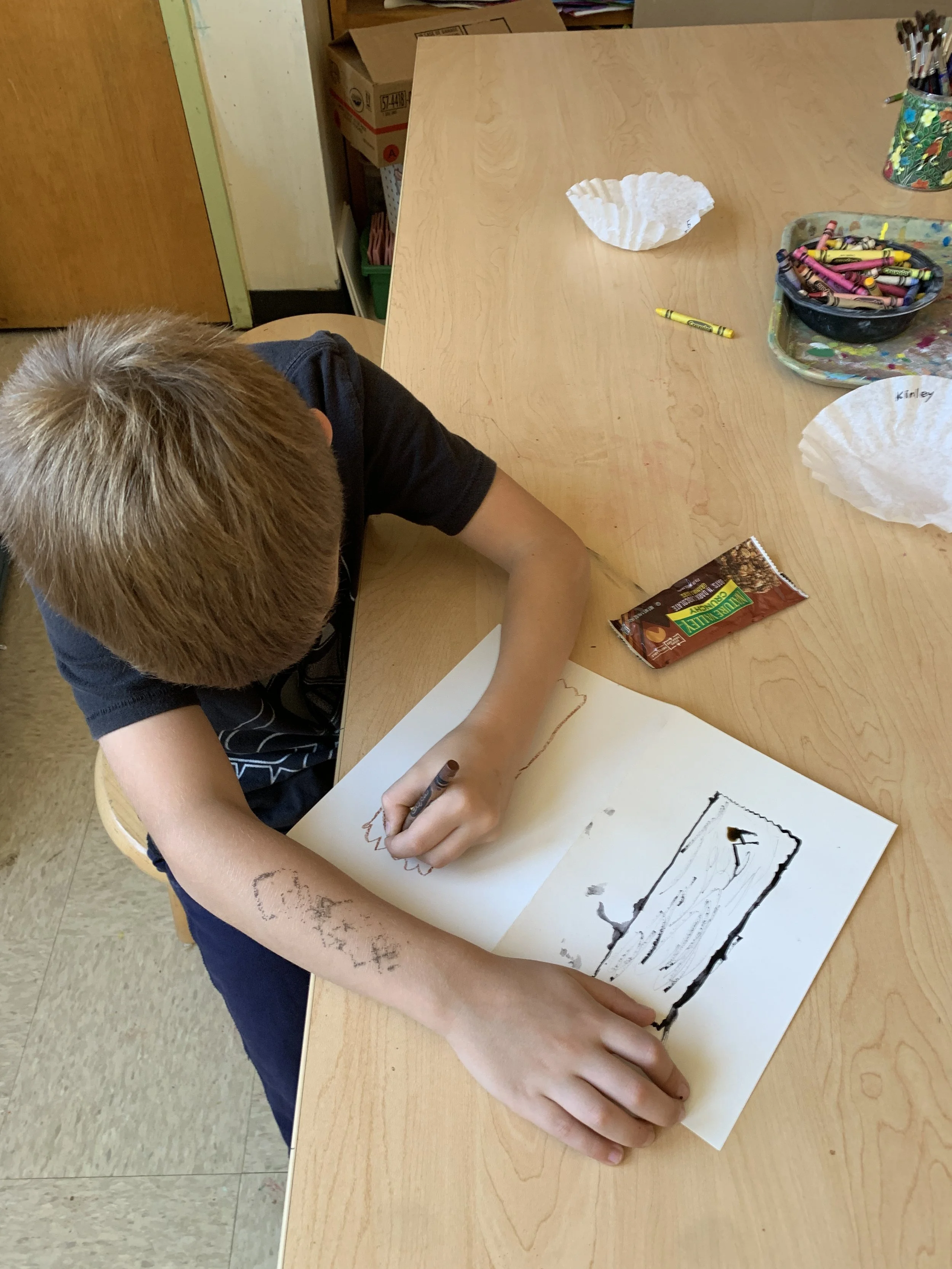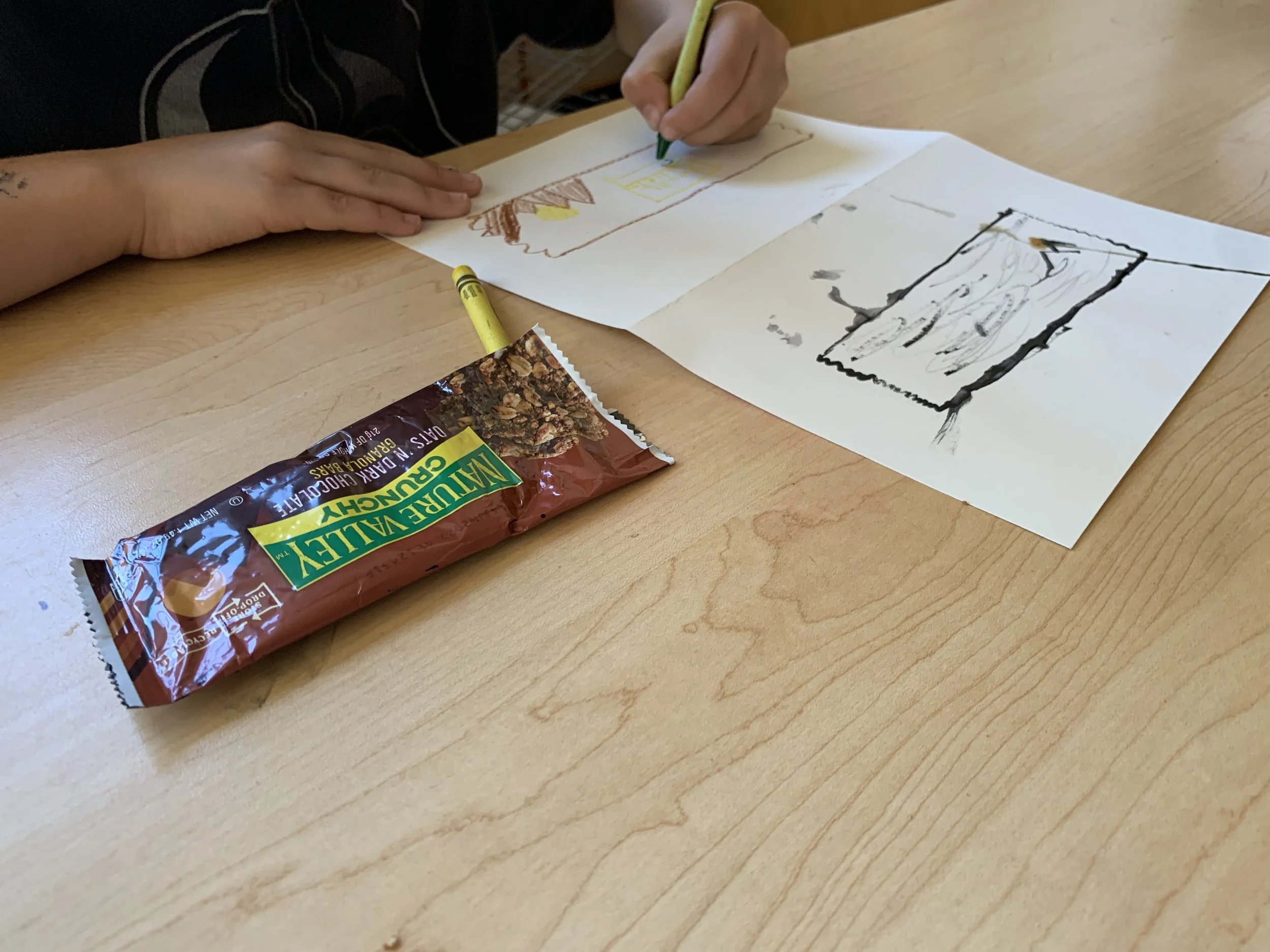 Third graders created the drawings below during a virtual trash awareness art lesson I designed and taught at Union Elementary School. I constructed the lesson to highlight my project's motivations and main ideas: connecting climate action and art, repetition, our trash production, and the exploration that arises from observing the same subject. Each student worked with a piece of paper folded into four sections and used four different materials. The third graders had five minutes to draw their pieces of trash using each medium for a total of four drawings. At the end of the lesson, each student had a booklet of different views of their piece of trash. I introduced the class to the curriculum through a pre-recorded video in which I discussed the environmental impacts of waste. I led the lesson virtually while the ar teacher assisted in the classroom. I plan to bring the lesson to other elementary school classrooms in my community.